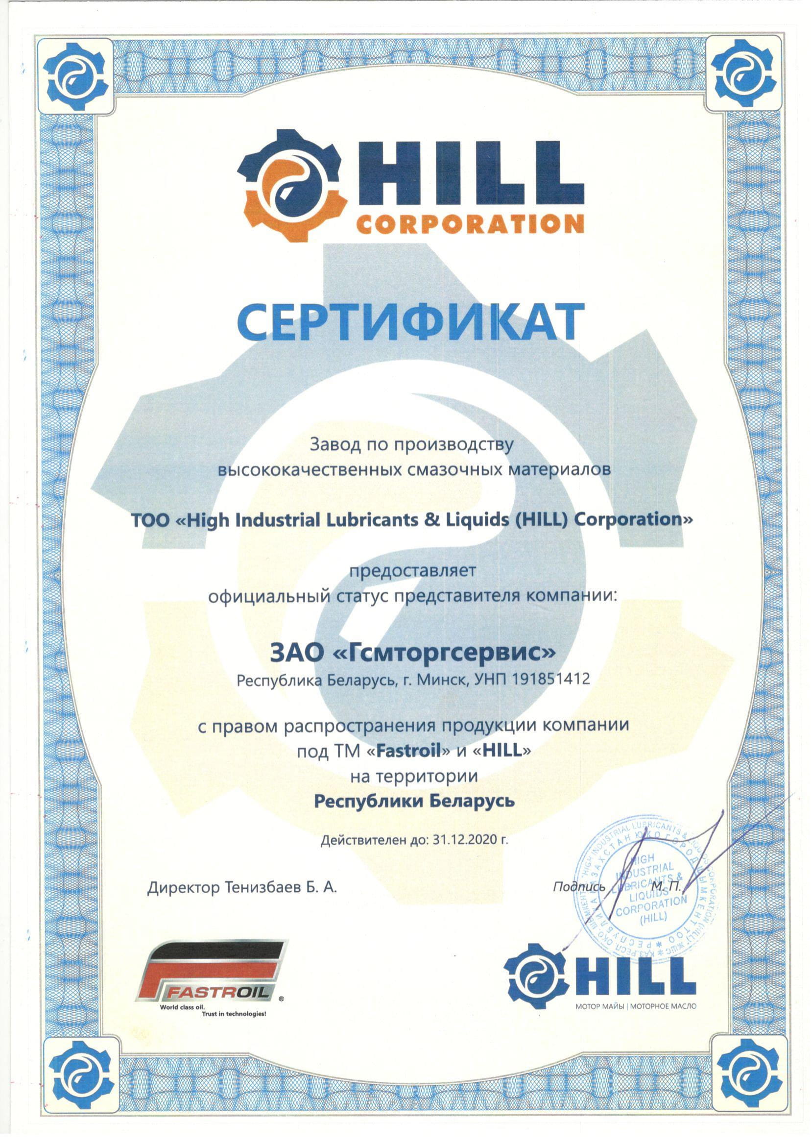 ЗАО "Гсмторгсервис" - официальный представитель компании "HILL" на территории РБ.